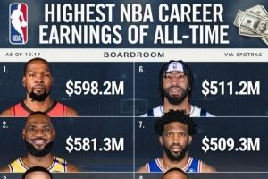 相关新闻>>>NBA历史总薪资TOP10均为现役球员!杜兰特第一 7人已超5亿美元