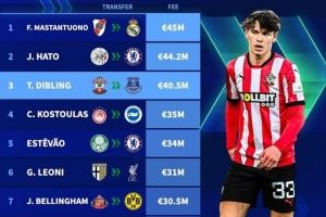 今夏U19球员转会费排名: