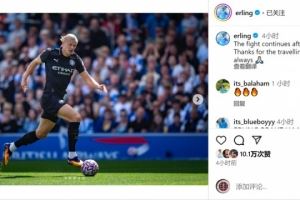 这是哈兰德出战的第100场英超比赛,他取得进球,但曼城落败,赛后哈兰德在社交媒体上写道:“休赛期后战斗继续,感谢球迷在客场一如既往的支持。”