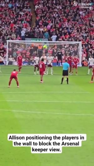 在索博打入制胜任意球前,阿利森特地过来指导维尔茨和加克波在排人墙时挡住拉亚视线。